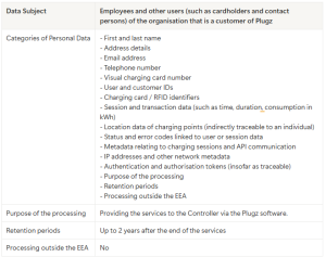 – Charging point and location data that may indirectly be traceable to an individual